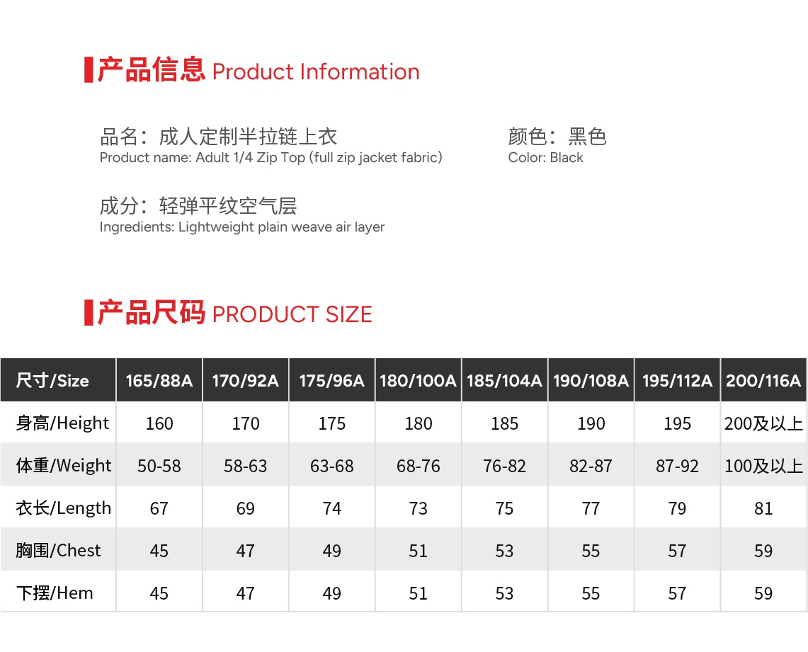 | Size | 165 or 170 or 175 or 180 or 185 or 190 or 195 or 200 |