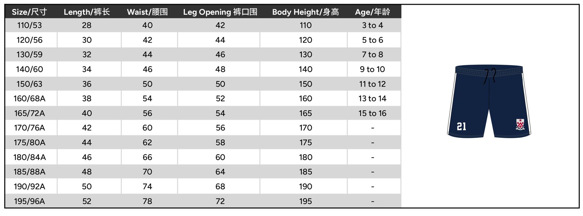 | Size | 110 or 120 or 130 or 140 or 150 or 160 or 165 or 170 or 175 or 180 or 185 or 190 or 195 |