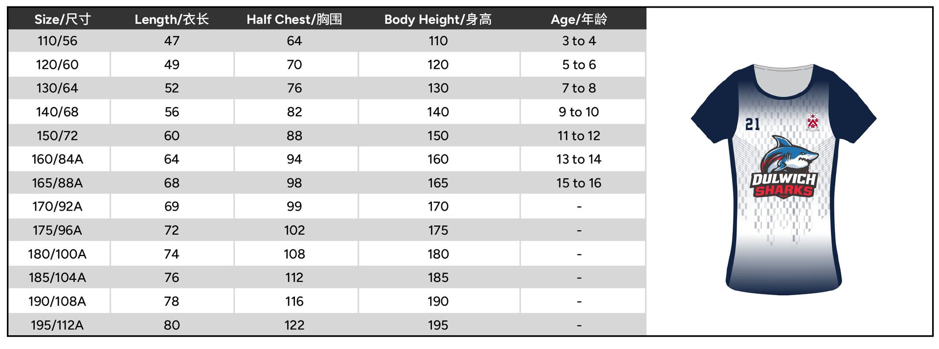 Size 110 or 120 or 130 or 140 or 150 or 160 or 165 or 170 or 175 or 180 or 185 or 190 or 195