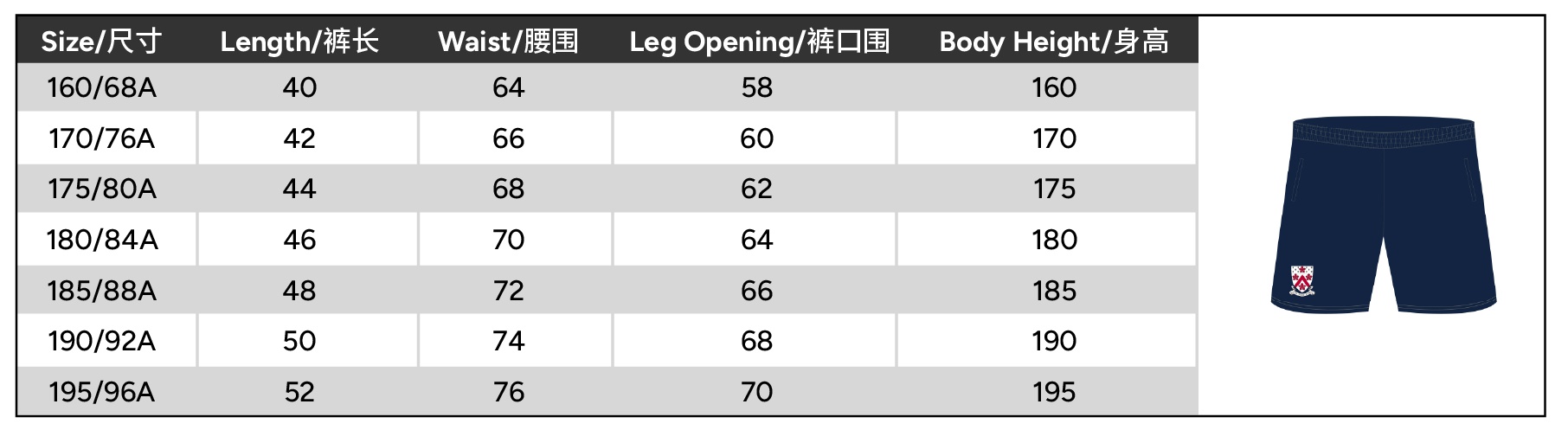 | Size | 160 or 170 or 175 or 180 or 185 or 190 or 195 |