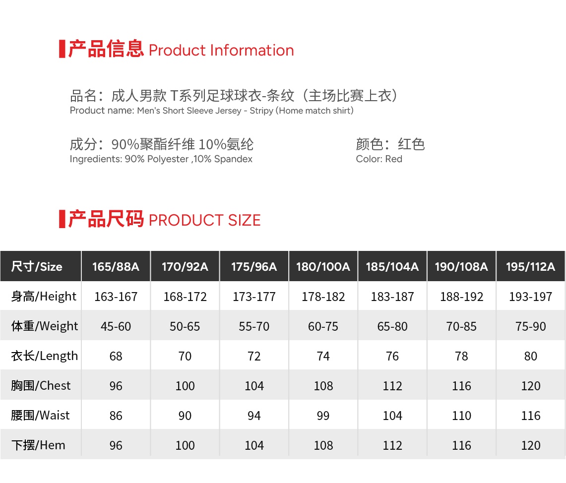 Size 165 or 170 or 175 or 180 or 185 or 190 or 195
