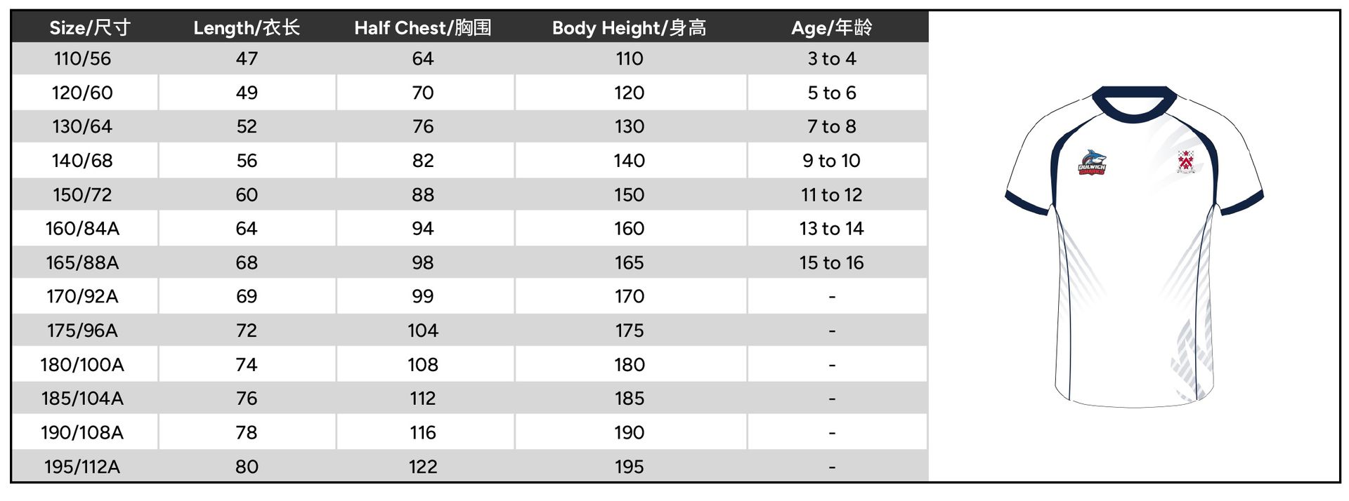 | Size | 110 or 120 or 130 or 140 or 150 or 160 or 165 or 170 or 175 or 180 or 185 or 190 or 195 |