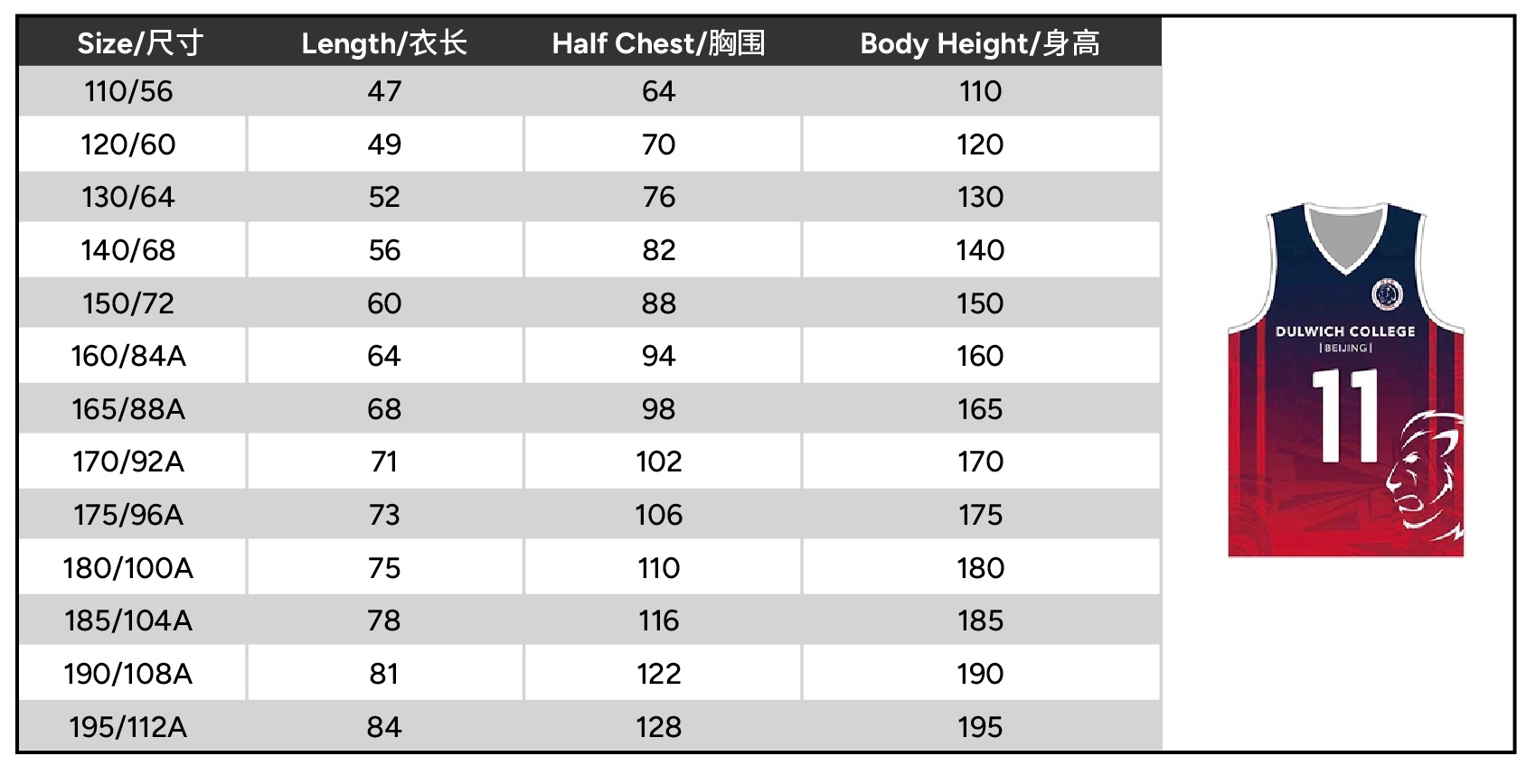 | Size | 110 or 120 or 130 or 140 or 150 or 160 or 165 or 170 or 175 or 180 or 185 or 190 or 195 |