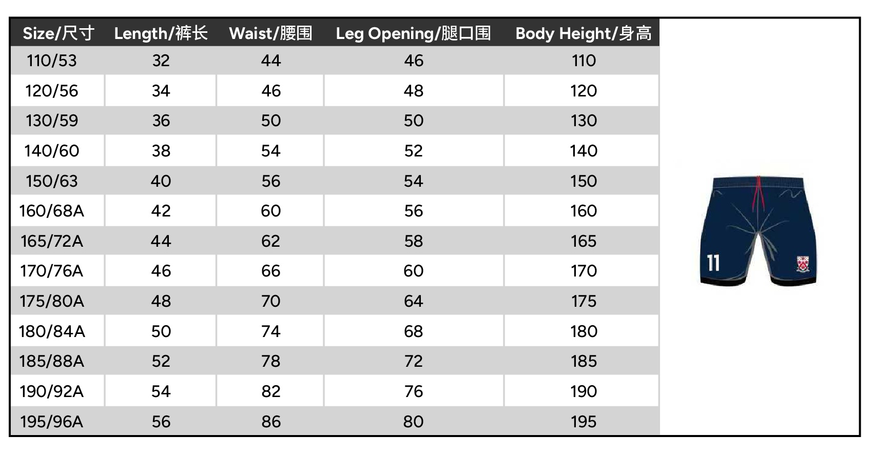 | Size | 110 or 120 or 130 or 140 or 150 or 160 or 165 or 170 or 175 or 180 or 185 or 190 or 195 |